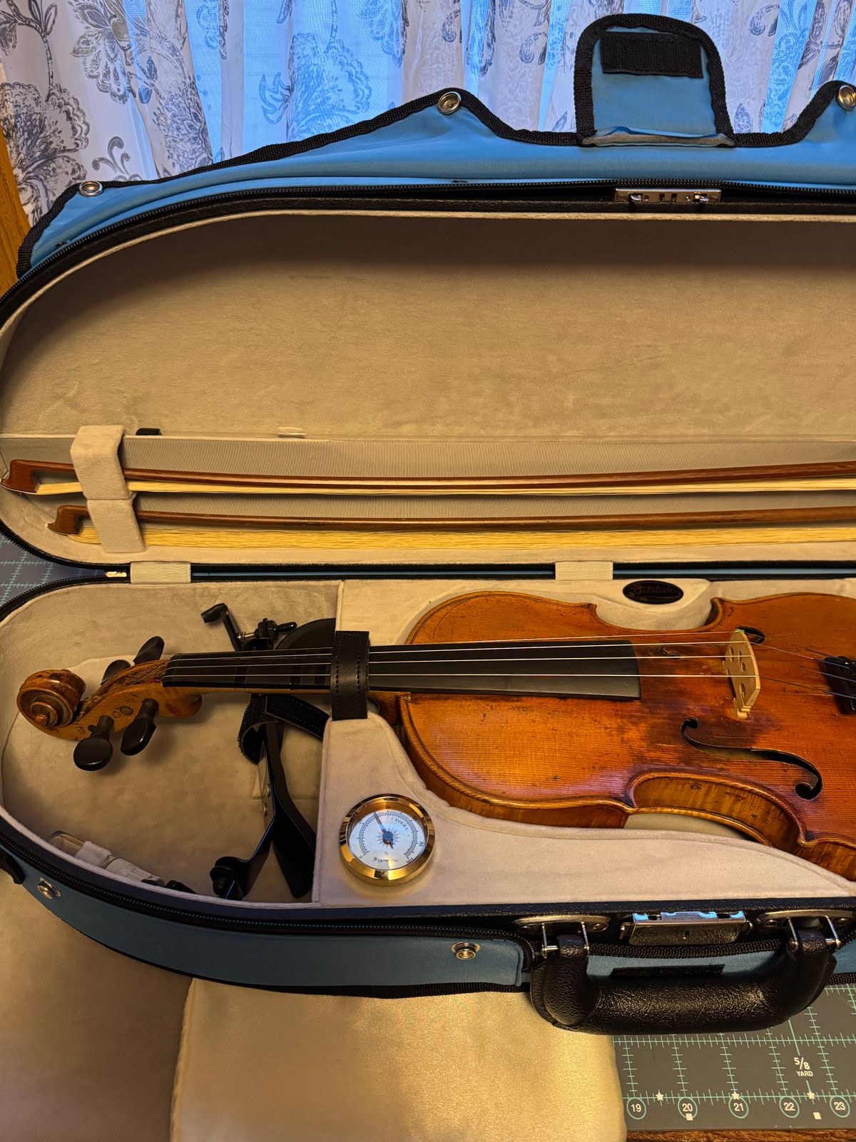 This is the second case I have purchased for my 165 year old Violin. I wanted something with padding, but enough room to hold a shoulder rest & accessories. This case has it all. The meter is insecurely & works well monitoring moisture levels. It is slightly heavier built than the others I have tried. But knowing it is made of wood construction gives me satisfaction on protecting my Precious instrument. This case was worth the wait!
